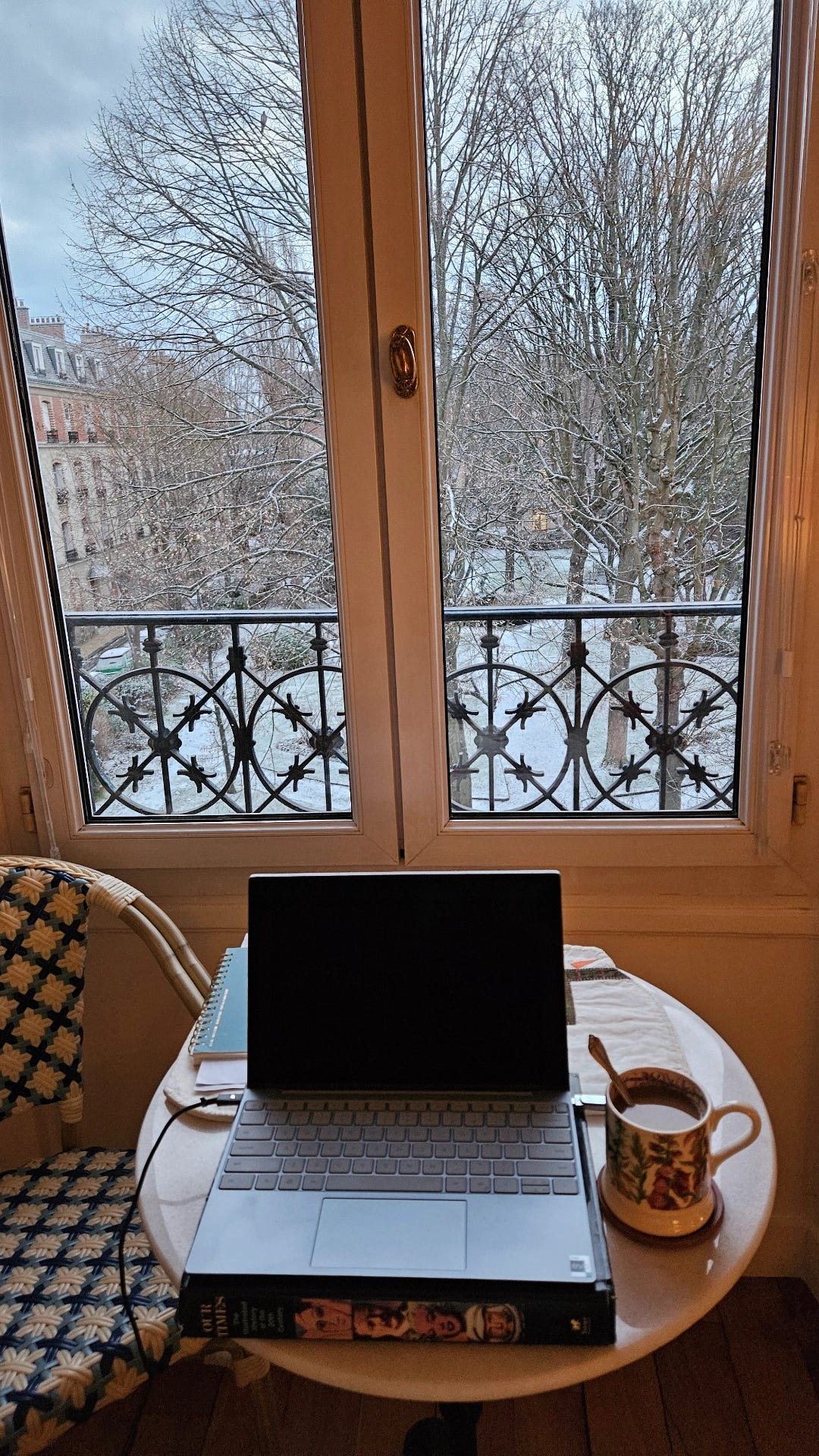 Happy New Year! Wishing you all the best - good health, happiness, time with cherished friends and family, and quiet moments for yourself. Today, in a letter to a friend, I was describing the pleasure I felt in writing to you through this newsletter. For much of professional writing, we authors dedicate years to projects before sending them to agents or editors, in a process referred to as submission. Oxford Dictionary’s second definition is “the action of presenting a proposal, application, or other document for consideration or judgement.” But the process often feels more like the first definition: “the action of accepting or yielding to a superior force,” or even “the condition of being submissive, humble, or compliant.” With submission, there is endless waiting and rejection. (Agents, editors, and publicists also pitch projects and receive their fair share of rejection.) It is a tough, heartbreaking process - it took years to find an agent for my novel The Paris Library. All this to say, in writing this newsletter, it feels fabulous to share my thoughts, decide on the publication date, and hit send - in hopes of hearing back from you.