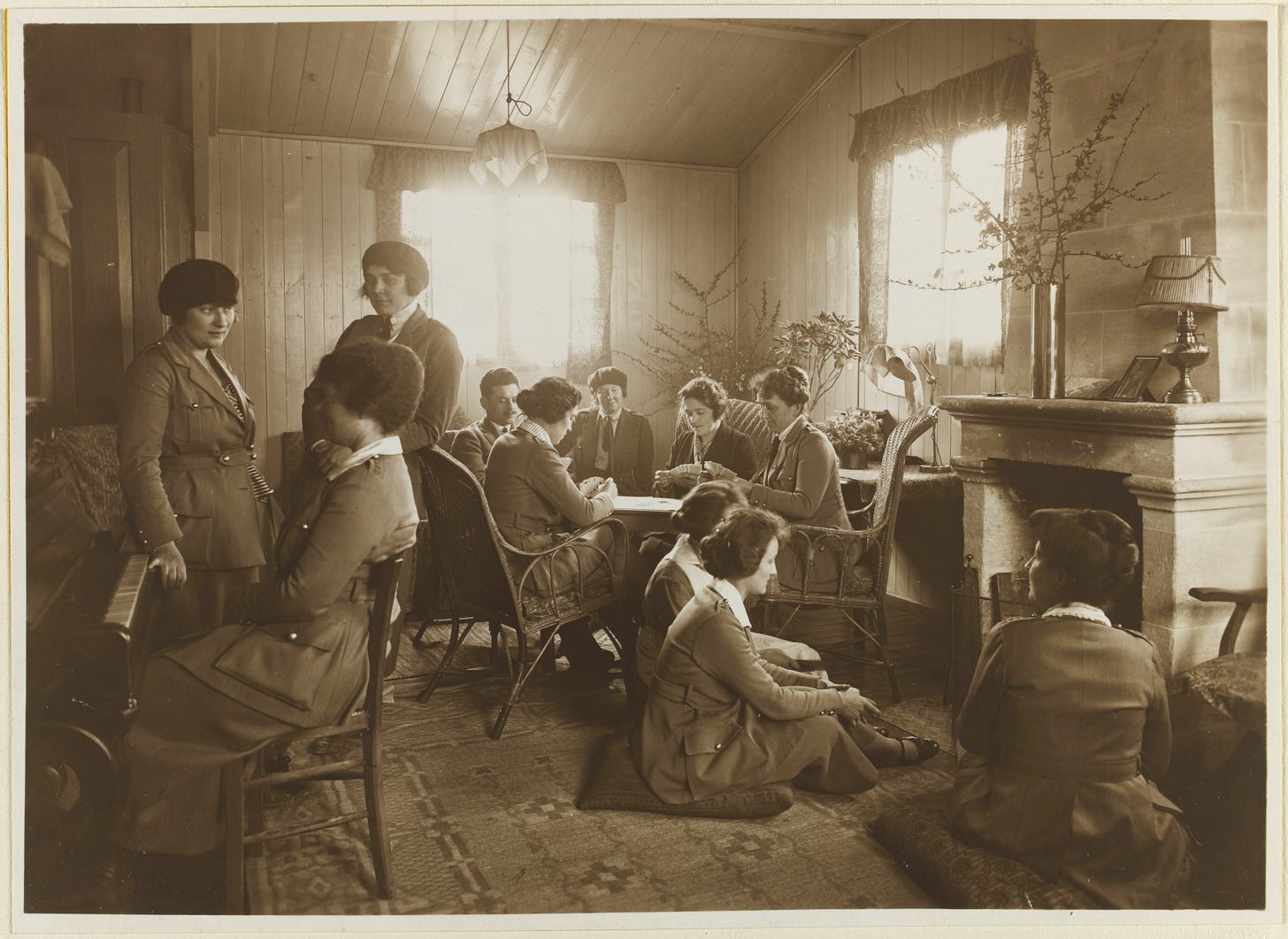 I’ll end with this photo of the Cards from my novel Miss Morgan’s Book Brigade. The volunteers are enjoying a rare moment of respite before they return to the world of war and devastation. Then as now, there is much work to be done, many ways we can and must help others.