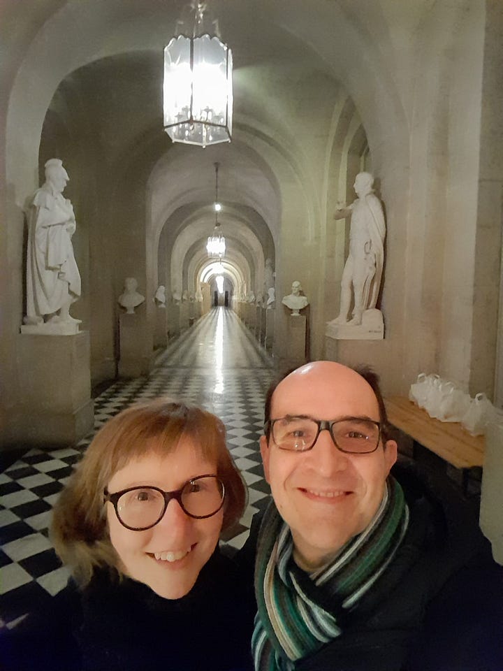 Thanks to the generosity of my friend Kate Thompson, Eddy and I had the opportunity to visit Versailles. With thousands of tourists visiting every day, the castle is an obstacle course that leaves you in awe, but also exhausted. It seems unimaginable to take a photo without people in the background, but here we are on Le Parcours du Roi, or the King's Tour. We felt like royalty.
