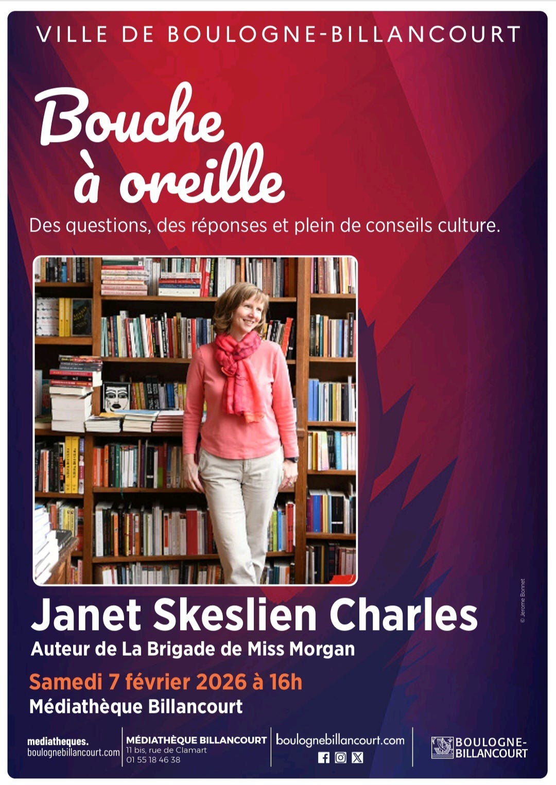 In January and February, I’m looking forward to meeting with readers! You can join us online on Saturday, January 17th at noon eastern time, when I will be meeting with @ATFrenchies. Here is the link. For members of WICE, I will be teaching an in-person master class Setting the Tone on Friday, February 6 at 2 pm. On Saturday, February 7th at 4 pm, I’ll be in conversation (in French) with Robin Karvo at the library in Boulogne-Billancourt.
